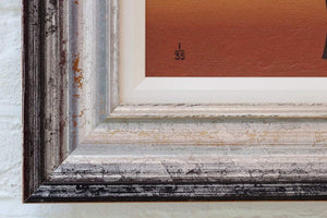 Upon arrival in our Weybridge showroom, each new arrival is examined by the studio & dispatch team. Frames are scrutinised for a perfect finish: glass is polished to perfection with anti-static art cloths. Auxiliary features like the string/wire and certification on the reverse are checked for positioning and correct mounting. Finally, the work itself is inspected to ensure a flawless transition from studio to gallery. Upon purchase, the work is cleaned again and meticulously subjected to our trademark 12-point checking system to ensure a safe secure journey to its ultimate destination.