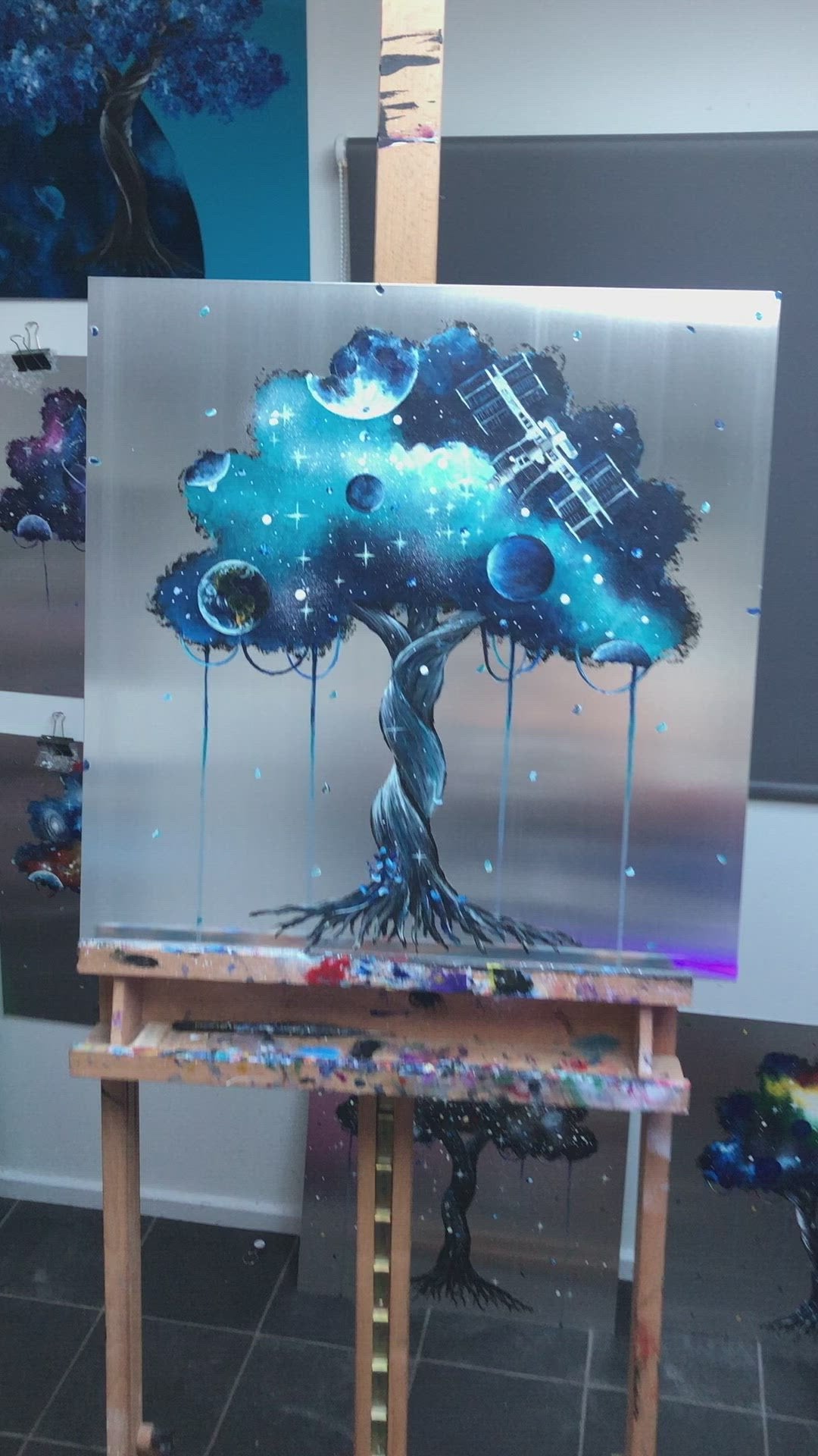 • Medium: Original Acrylic paint layered upon Aluminium built up with metal leaf, metallic pigments, ink, pen detailing and specialized UV glow in the dark paints, finished with a spray varnish.