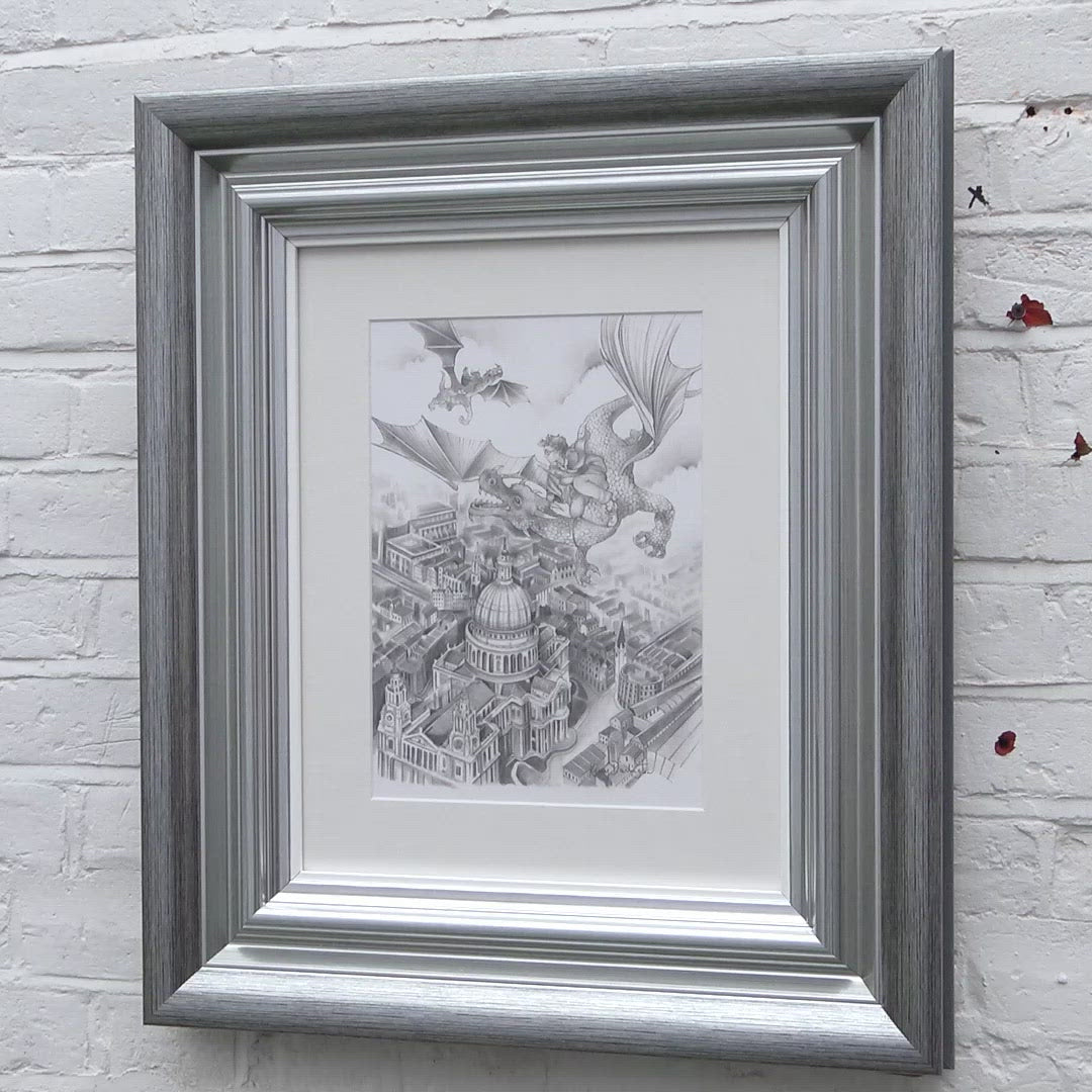 In an extraordinary surprise, Kerry Darlington unveils ‘Flight Over St. Pauls’ in which the artist returns her cast of magical characters to London and the site of one her most celebrated works of all time ‘Worlds Collide’. Perhaps one of the most complex pencil sketches to ever be released as a limited edition, dragons soar above St. Pauls as the world of witchcraft and wizardry is bought to life in her imitable vision. A very rare trip back to St. Pauls Cathedral, eagle eyed and dedicated followers will recognise the reference to iconic title ‘Come Away Come Away’ in which Peter Pan and Tinkerbell soar over the same skyline.