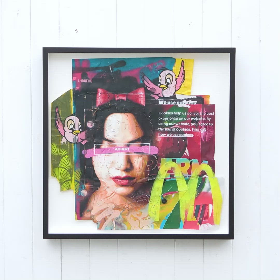 Wyecliffe Galleries are proud to present ‘Paper Trails’, a collection of dynamic pop portraits from renowned artist Lhouette. Each original piece has been produced utilising his decade old collection of archived hand cut stencils from previous iconic masterpieces and reflects the rich eco-cycle of his studio practice. Charged with his distinctive collision of brands, symbols and characters, each composition carries a connection to the compelling narrative of pop maximialism Lhouette has ignited.