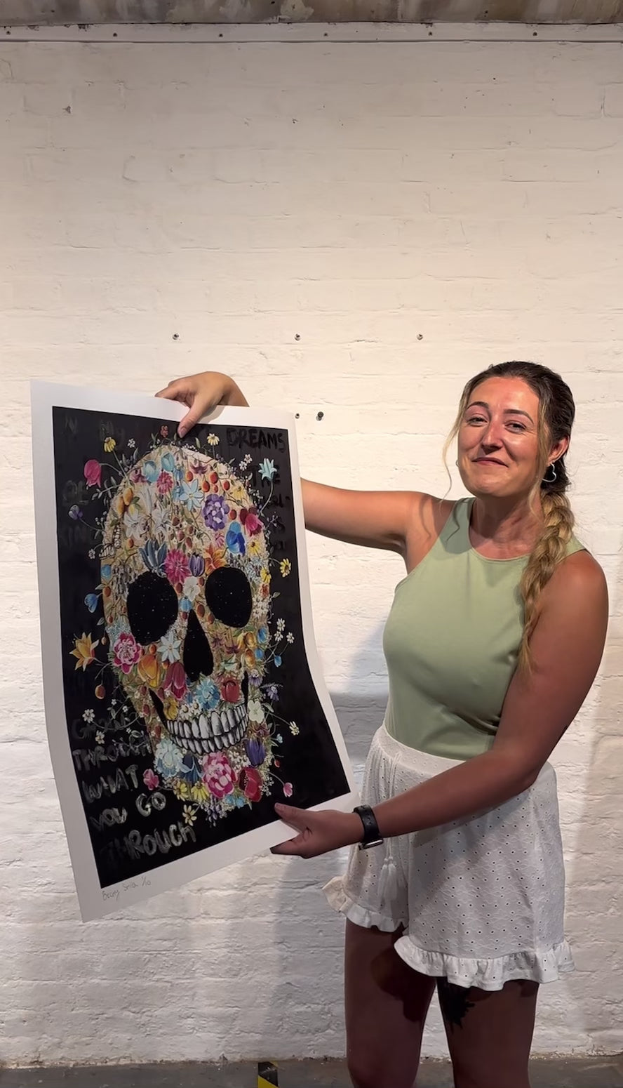 Becky Smith has rapidly emerged as a key figure in contemporary art, captivating collectors and enthusiasts worldwide with her signature skull motifs, adorned with intricate flowers, climbing vines, butterflies and bees. Combining vibrant natural elements that appear to grow from within, evoking life, beauty, and transformation.