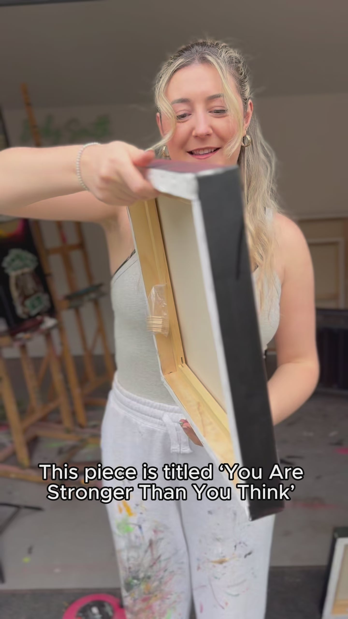 Hand-painted in acrylic and spray paint and finished with UV-reactive and glow-in-the-dark pigments, the piece transforms under light, revealing a deeper layer of inspiration. With its 40 x 40 cm scale and punchy palette, this artwork is the perfect blend of attitude and affirmation — ideal for collectors drawn to contemporary art with purpose.