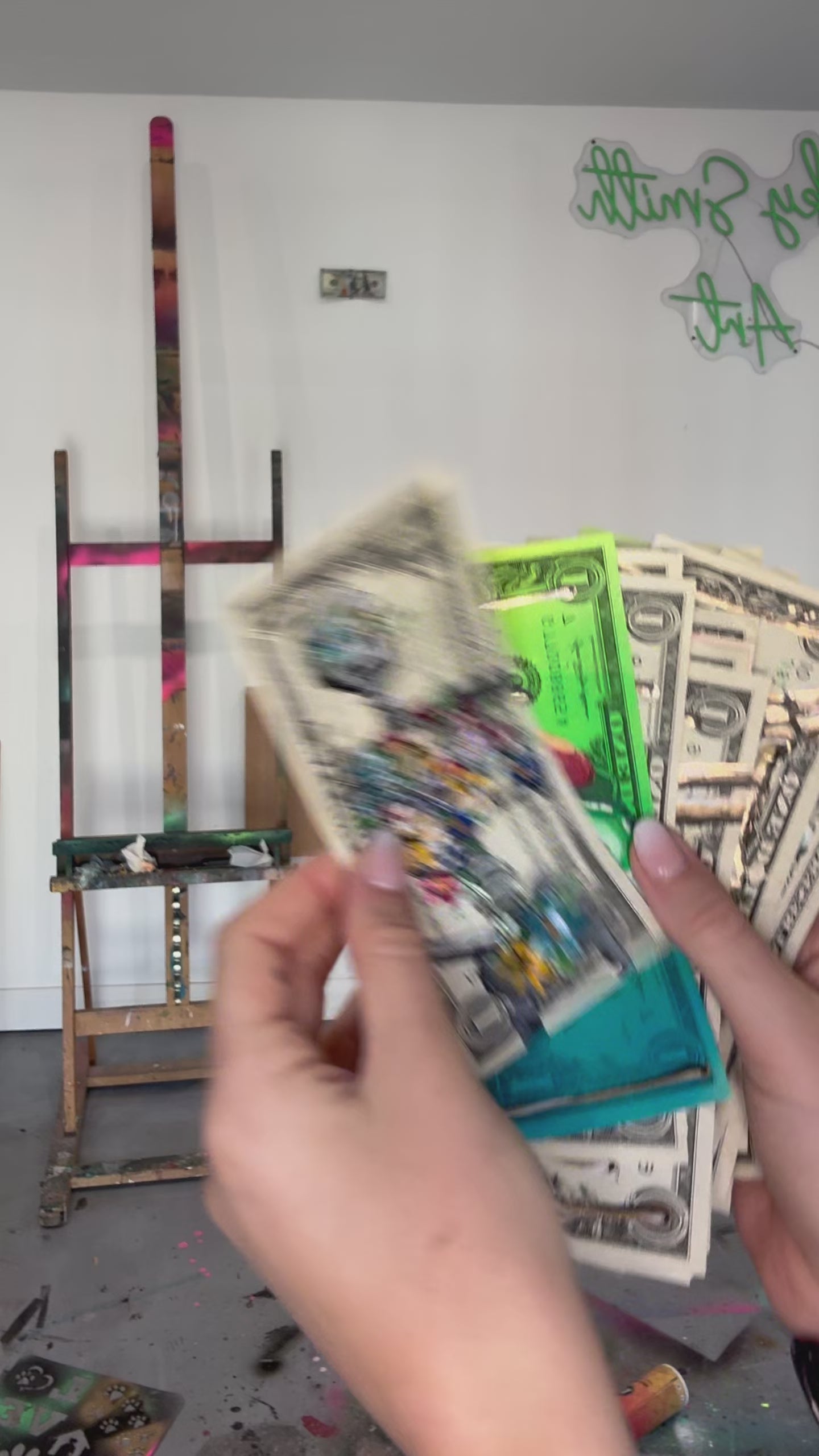 • Medium: Unique, original hand-painted dollar bill. Each one has a different design.