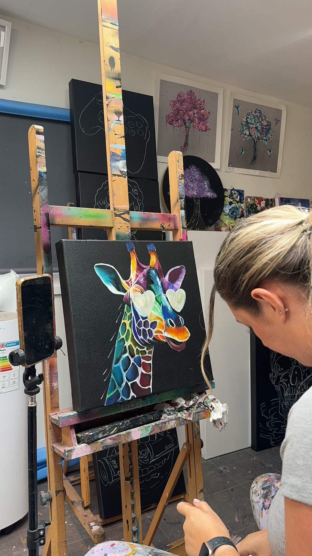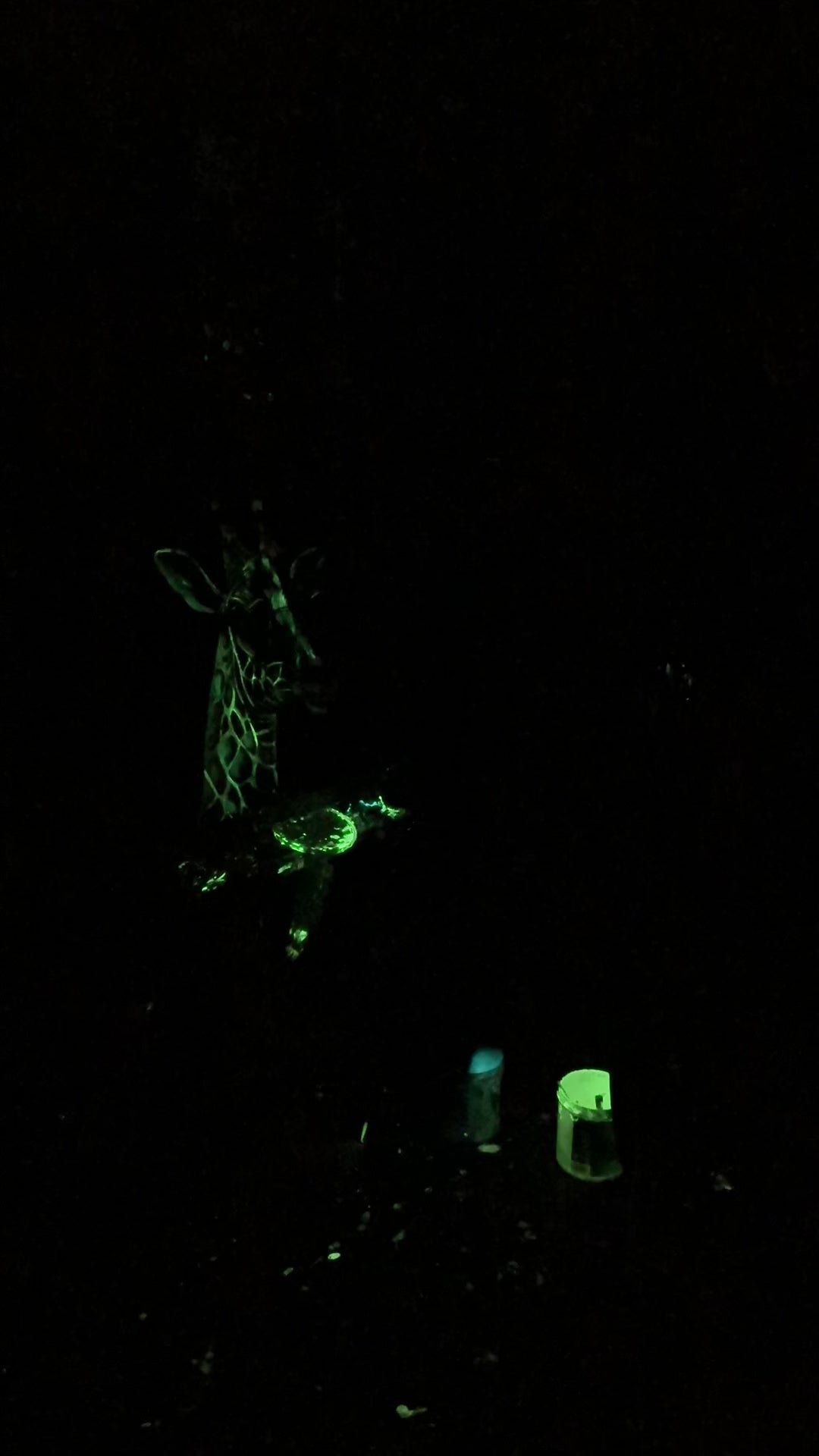 • Medium: Original acrylic paint with a UV reactive and specialised UV glow-in-the-dark paint finished with a spray varnish.