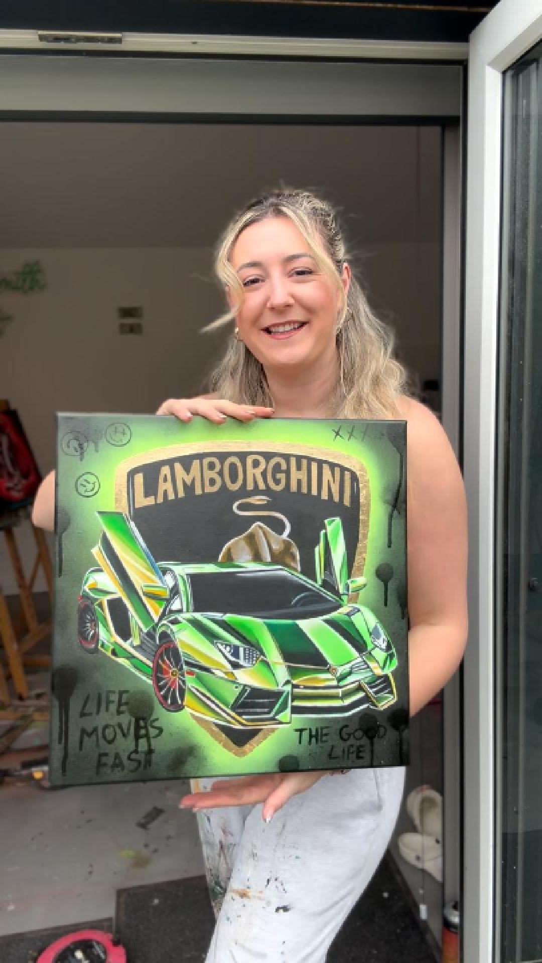 Life Moves Fast is Becky Smith’s high-octane tribute to power, luxury, and the thrill of momentum. Featuring a striking Lamborghini Aventador bursting from its iconic badge, this original artwork captures the pulse of Marbella’s elite lifestyle, bold, fast-paced, and unapologetically vibrant.