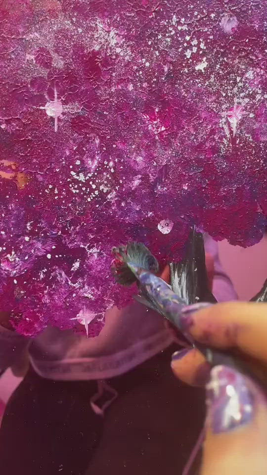 • Medium: Original acrylics and mixed media hand painted onto two multiple layers of Perspex creating a 3D holographic effect, finished with specialized UV glow in the dark paint on a Perspex mirror backing