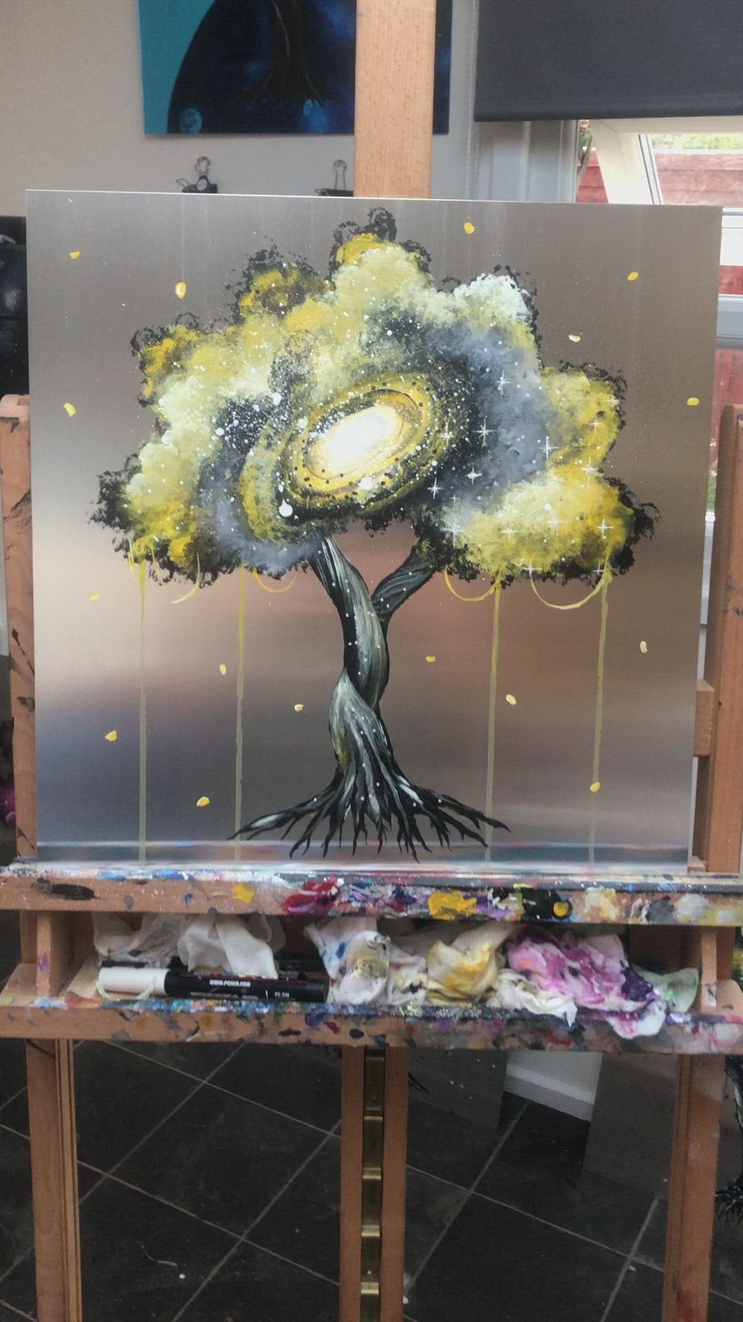 • Medium: Original Acrylic paint layered upon Aluminium built up with metal leaf, metallic pigments, ink, pen detailing and specialized UV glow in the dark paints, finished with a spray varnish.