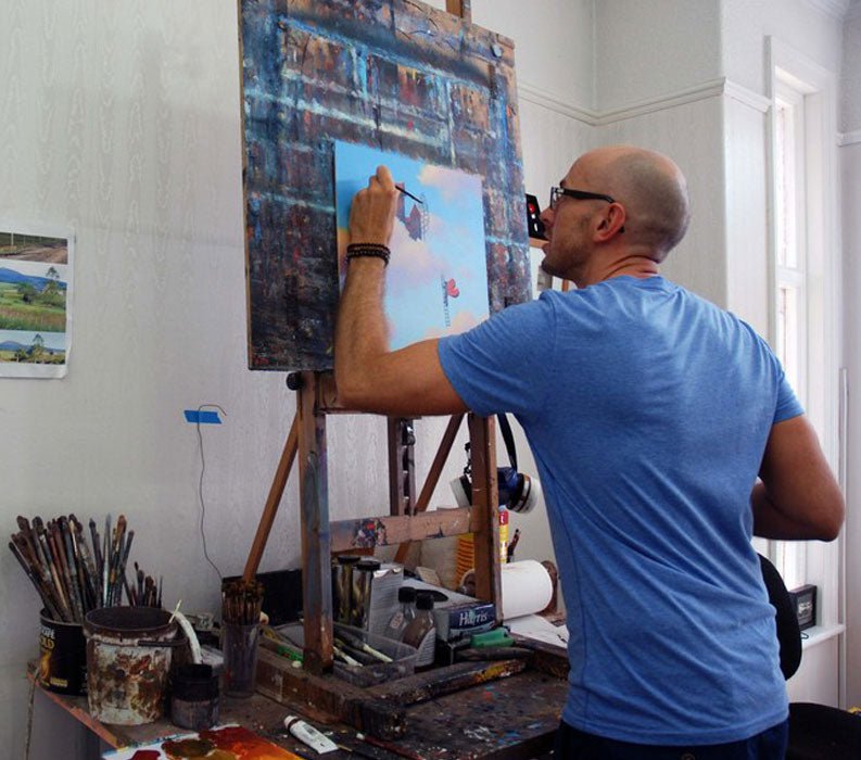 Often depicting gorgeous landscapes his iconic couple Ted & Doris travel the world with their two children and the family dog. Renshaws trademark heart adorns all his work, with each edition having at least one lovingly hand painted by the artist himself.
