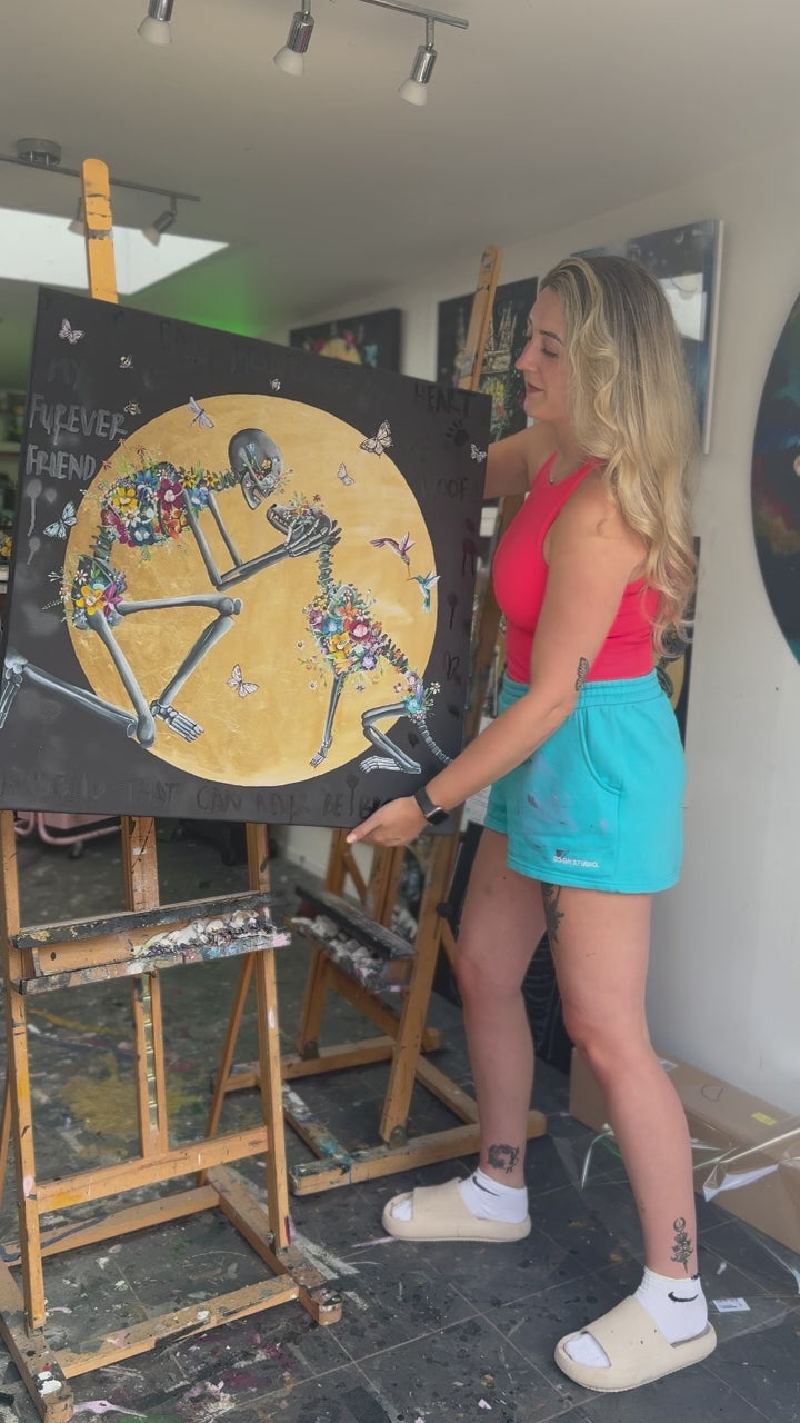 Becky Smith has rapidly emerged as a key figure in contemporary art, captivating collectors and enthusiasts worldwide with her signature skull motifs, adorned with intricate flowers, climbing vines, butterflies and bees. Combining vibrant natural elements that appear to grow from within, evoking life, beauty, and transformation.