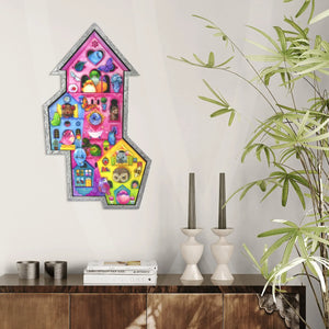 Step into Kerry Darlington's enchanting world with Birds of a Feather, a vibrant shaped unique edition inspired by her lifelong love of nature.