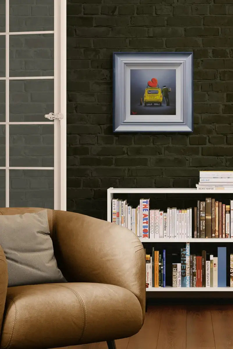 Step into the world of British nostalgia with David Renshaw's boutique edition piece, 'This Time Next Year, We'll Be Millionaires'. Inspired by the beloved sitcom 'Only Fools and Horses,' this artwork captures the charm and humour of the iconic yellow three-wheeler, making it a must-have for fans and collectors alike.