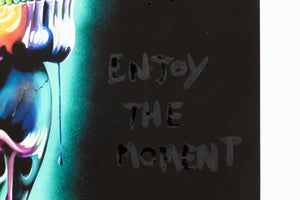 Each print is hand-embellished and finished with glow-in-the-dark UV-reactive paint, ensuring the piece transforms beautifully under changing light. Part of Becky’s celebrated ‘Viva La Vida’ collection, this is a highly collectible statement work that fuses street-art flair with fine art execution.