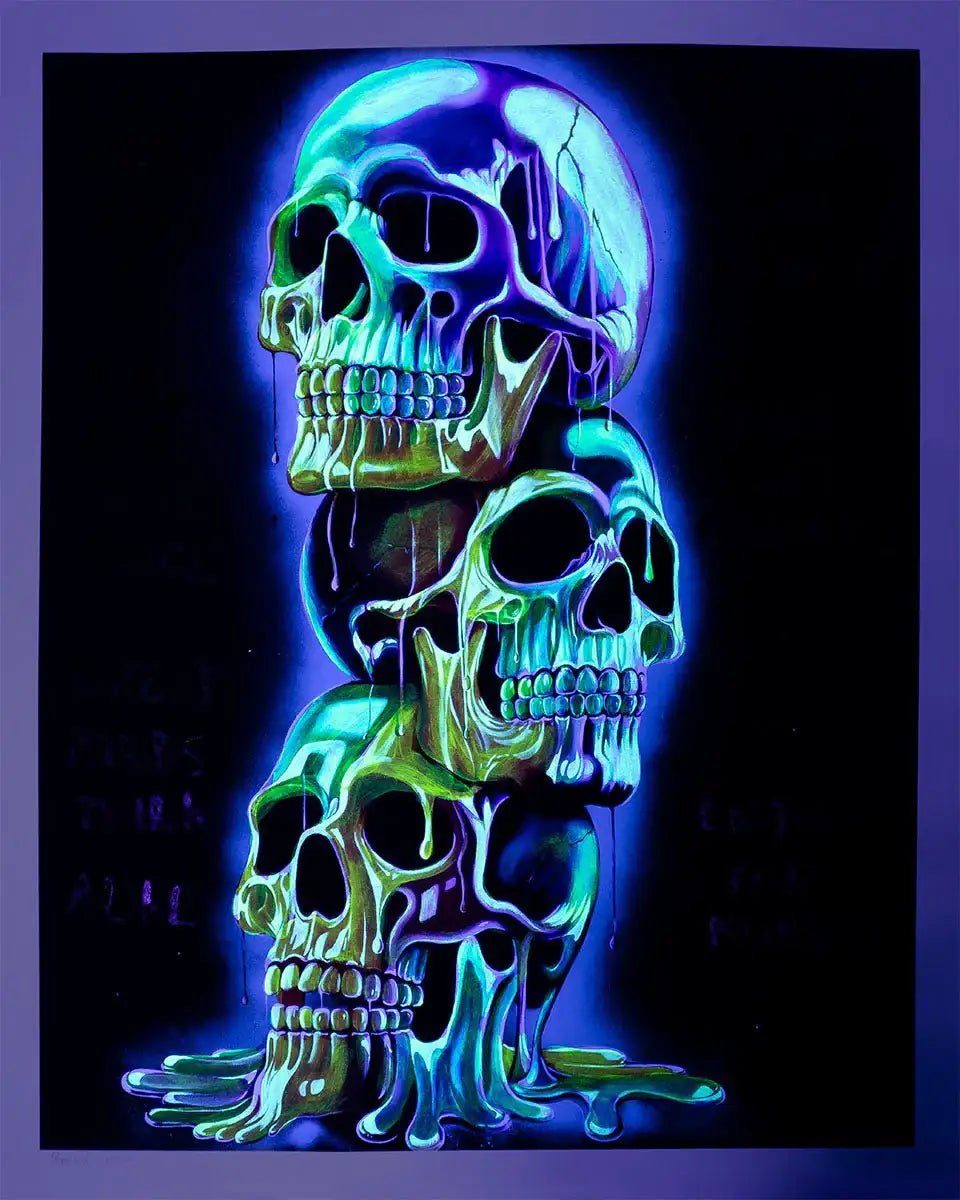 • Medium: Limited edition artist-proof giclée print on Hahnemuhle fine art paper, hand embellished and finished with a specialised UV glow-in-the-dark paint.
