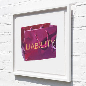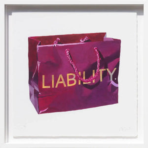 Velvety purple with golden lettering, “Liability” is a delicious contradiction, glossy, glamorous, and laced with warning. This edition riffs on the language of finance but cuts deeper, nodding to the emotional price tags we place on relationships. Whether it’s a legal term or a personal red flag, the message is clear: some things (or people) come at a cost. Striking the balance between sass and sophistication, this piece looks exquisite in home offices, lounges, or intimate spaces that flirt with irony. A smart choice for collectors who love their art bold, beautiful and just a little dangerous.