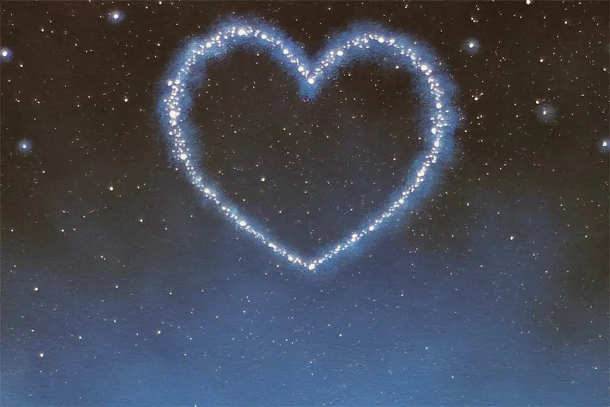 Often depicting gorgeous landscapes his iconic couple Ted & Doris travel the world with their two children and the family dog. Renshaws trademark heart adorns all his work, with each edition having at least one lovingly hand painted by the artist himself.