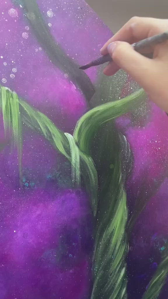 • Medium: Original Acrylic paints and Spray Paints on board, featuring specialized UV glow in the dark paint finished with a high gloss varnish.