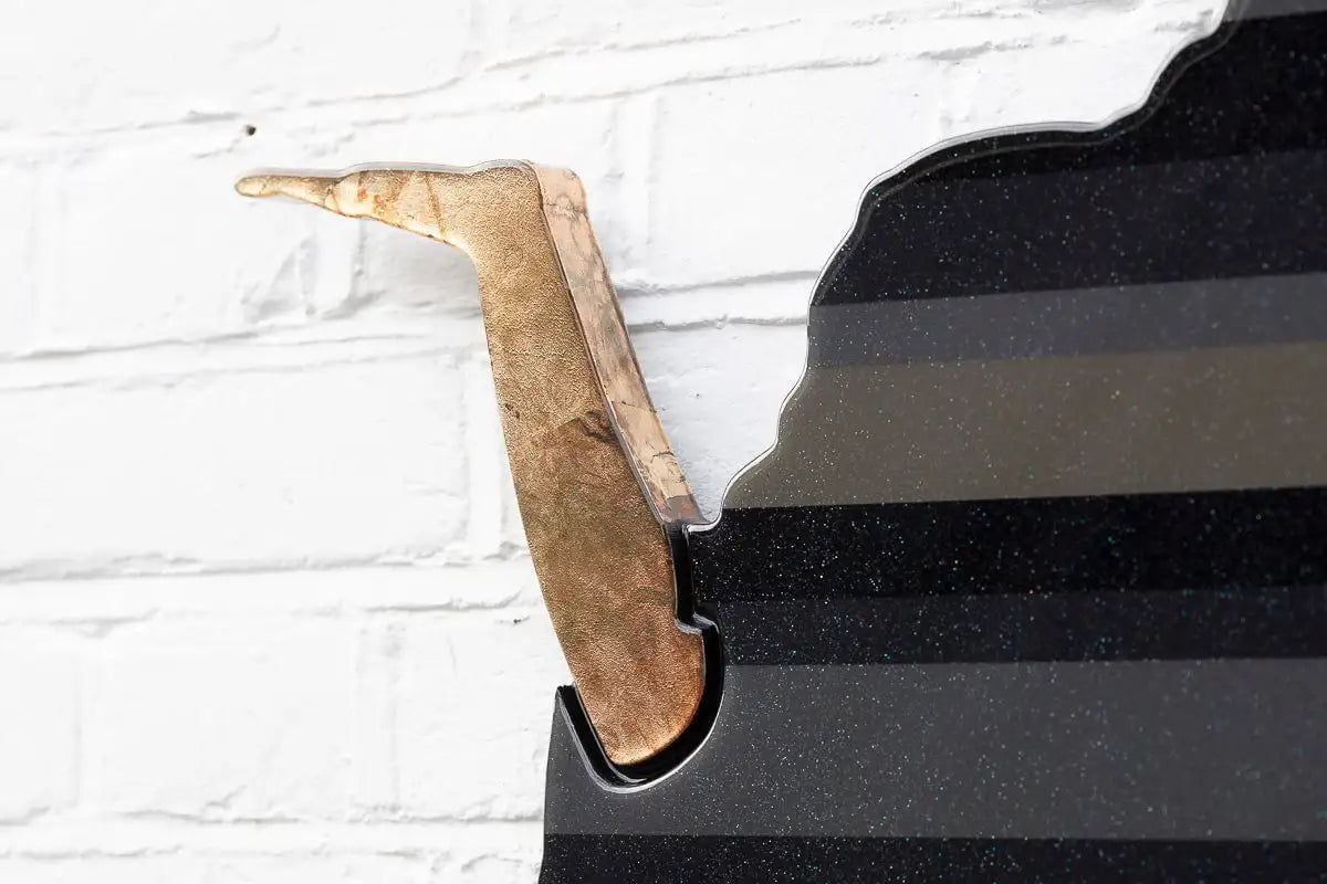 • Medium: Original aerosol, acrylic and marbled blonde metallic leaf. Finished in a high gloss resin.