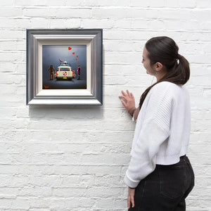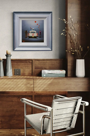 David Renshaw’s ‘Who You Gonna Call...’ is a captivating boutique edition giclée print on canvas, reimagining the iconic Ghostbusters Ecto-1 with his signature Northern Romance characters, Ted and Doris. Limited to just 25 prints and meticulously hand-finished, this piece effortlessly blends nostalgia and pop culture with fine art craftsmanship. A must-have for collectors and film enthusiasts alike, this edition celebrates the magic of a cinematic legend in David Renshaw’s unmistakable style.