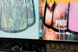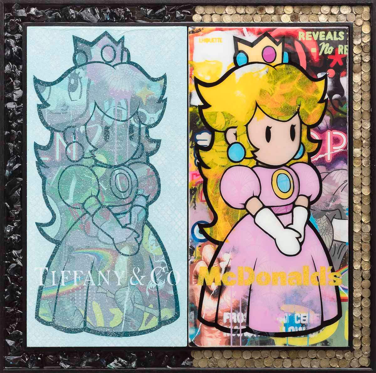 • Medium: Original aerosol and acrylic over paper collage canvas. Part finished in high gloss resin and artist grade diamond dust.