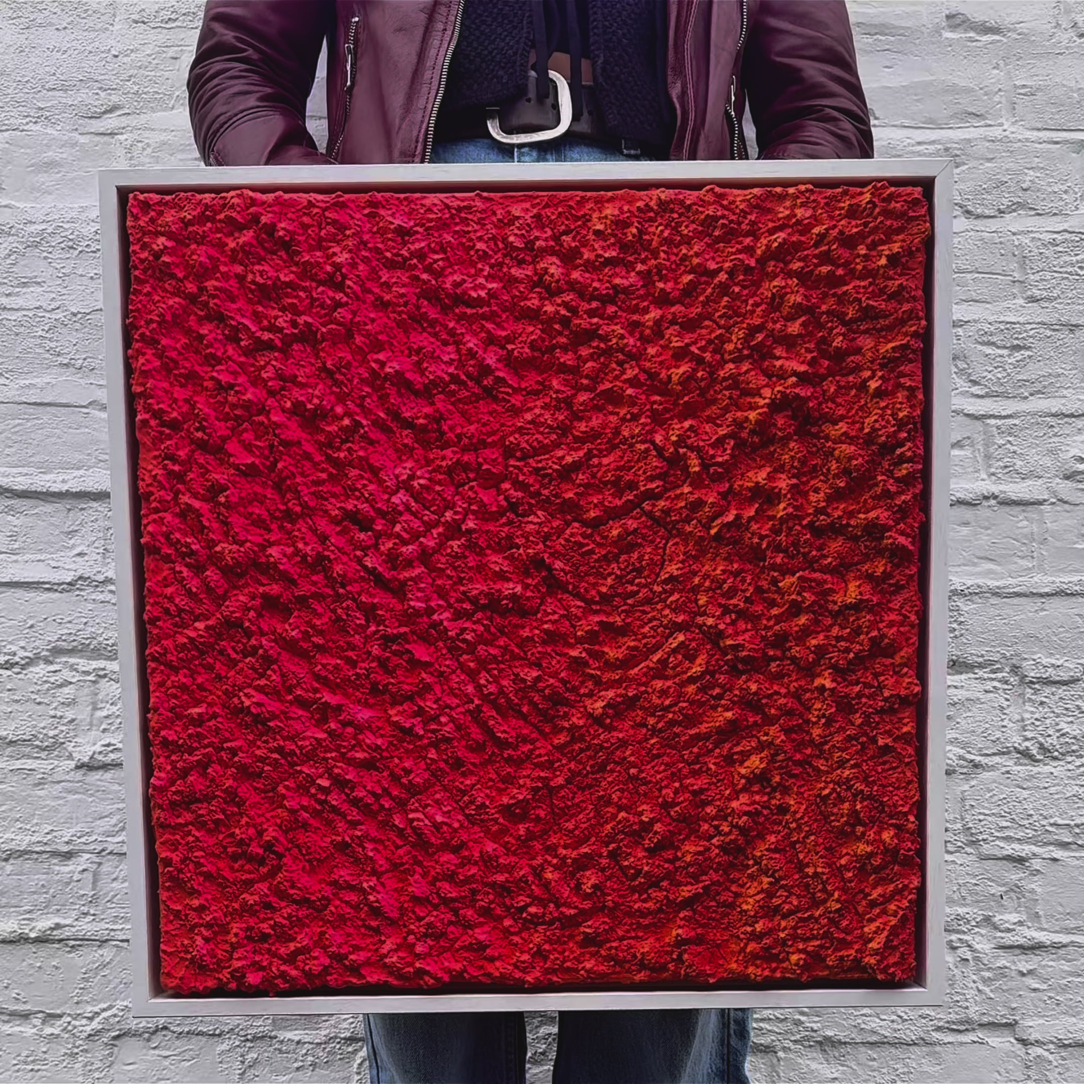 Experience the fiery allure of Lava Flow, an original mixed media masterpiece by renowned artist Mitchel Lawton. This striking piece, is a vibrant explosion of red hues, expertly crafted to captivate and inspire. The textured surface mimics the dynamic flow of molten lava, bringing a sense of movement and energy to any room.