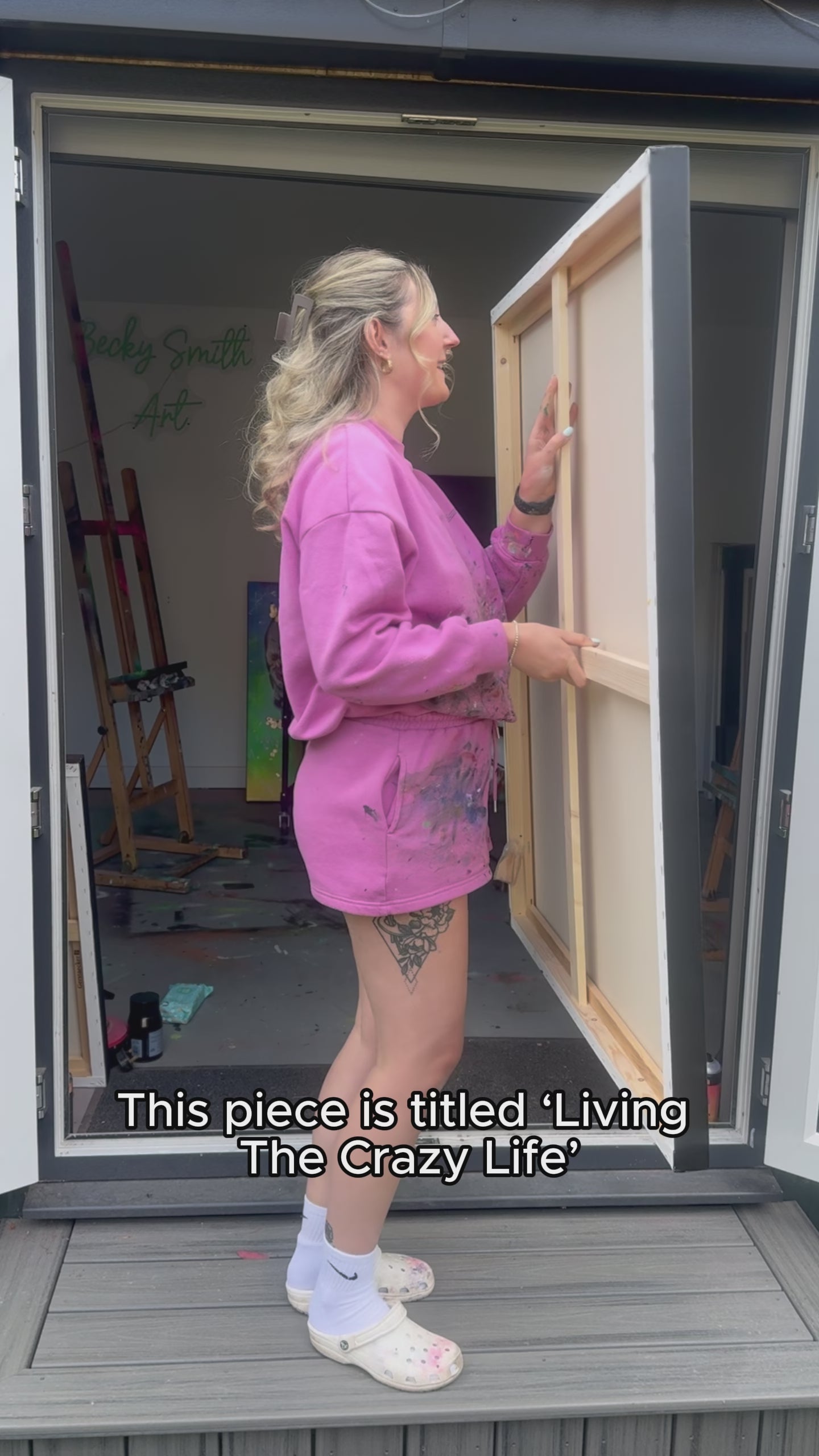 Experience the vibrant and lively energy of Becky Smith's "Live the Crazy Life - Original," a captivating piece that brings a splash of colour and excitement to any room. This original artwork combines acrylic and spray paint with UV reactive and glow-in-the-dark elements, creating a dynamic visual experience both day and night.