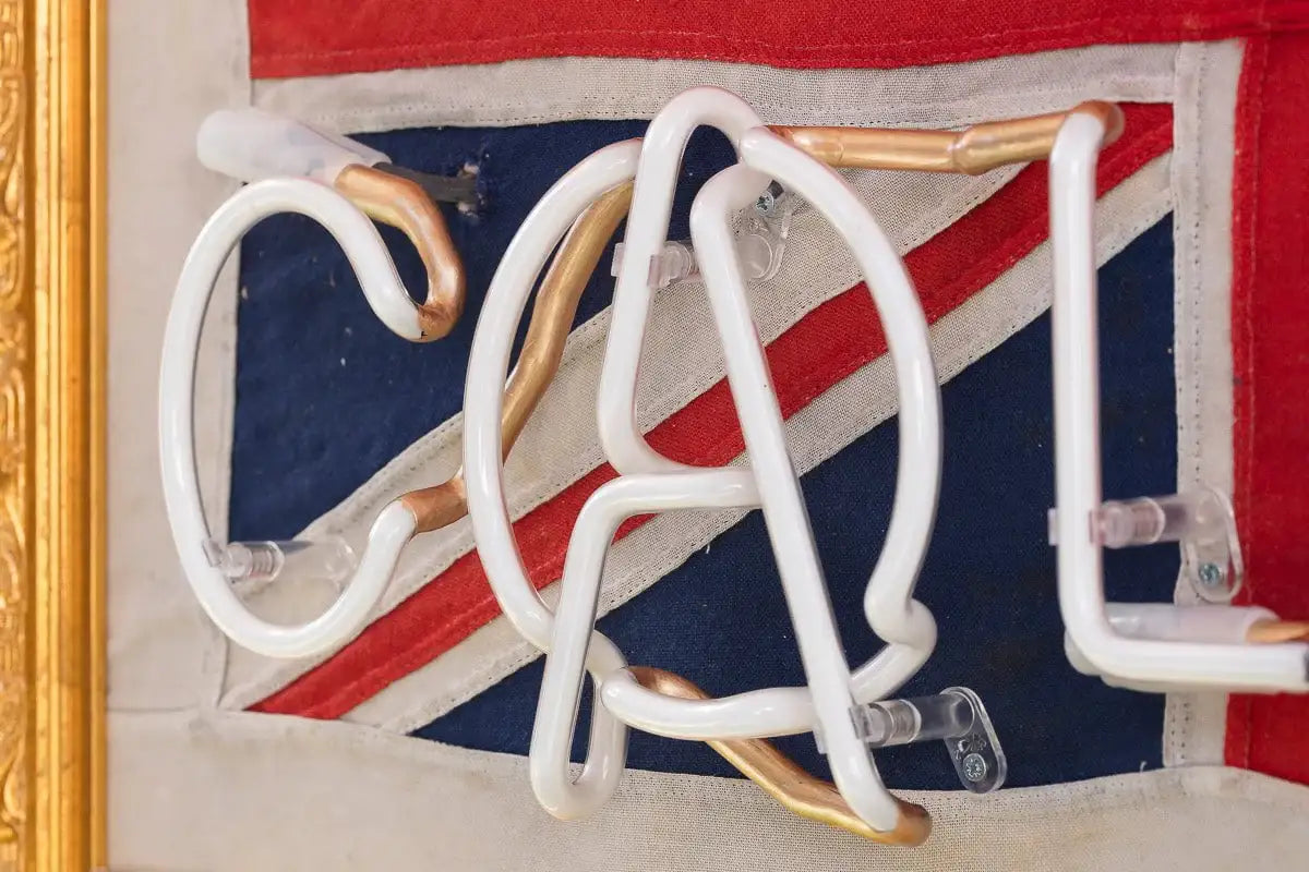 • Medium: Handmade Neon/Argon Lighting on an authentic Vintage World War II active service war flag.