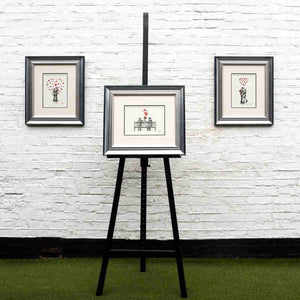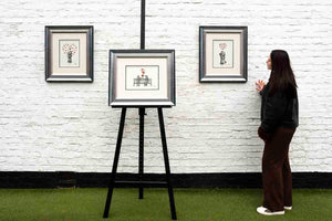 Upon arrival in our Weybridge showroom, each new arrival is examined by the studio & dispatch team. Frames are scrutinised for a perfect finish: glass is polished to perfection with anti-static art cloths. Auxiliary features like the string/wire and certification on the reverse are checked for positioning and correct mounting. Finally, the work itself is inspected to ensure a flawless transition from studio to gallery. Upon purchase, the work is cleaned again and meticulously subjected to our trademark 12-point checking system to ensure a safe secure journey to its ultimate destination.